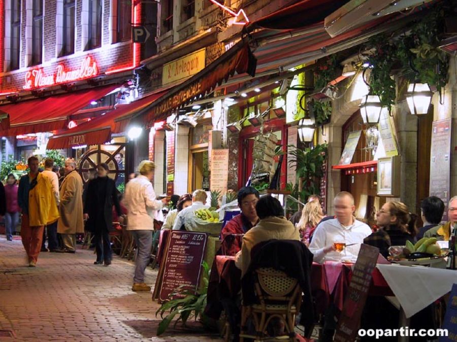 La place est ceinte d’agréables ruelles piétonnes. Les restaurants touristiques alignent un même menu, de la rue des Bouchers à la rue Marché-aux-Herbes. Chez Toone, l'enchantement ne cesse d'opérer, du ravissant petit théâtre de marionnettes au chaleureux estaminet adjacent.