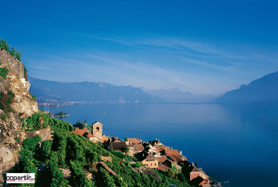 A l'est de la rive helvétique du lac Léman s'étendent les vignobles en terrasses de Lavaux, puis «la Riviera suisse» de Vevey à Montreux. Douceur des paysages et du climat, du lac jusqu'aux stations des Alpes vaudoises