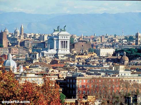 Sur les terrasses surplombant l'imposant palais Vittorio-Emanuele II (celui en forme machine à écrire!), l'on profite de belles vues sur Rome. Profitez-en pour admirer le plafond de la basilique Santa Maria in Aracoelli. Le bel escalier de la Cordonata capitolina mène jusqu'à la place du Capitole (piazza del Campidoglio), sur la colline du même nom.