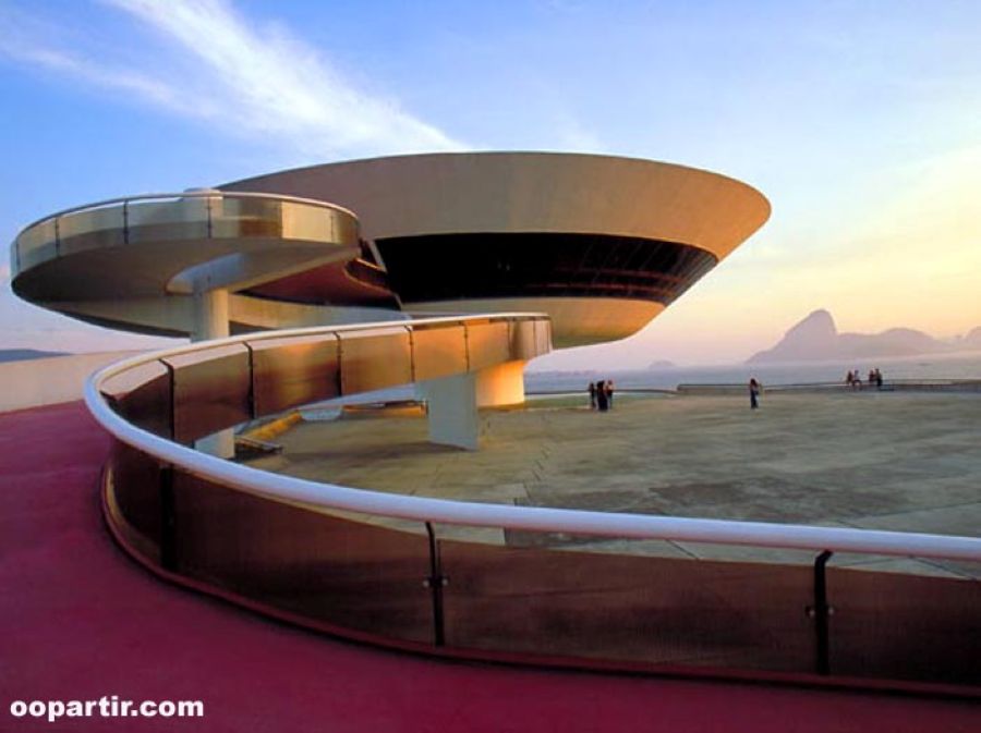 musée d'art contemporain dessiné par le grand architecte brésilien Oscar Niemeyer est situé à Niteròi, reliée à Rio par un grand pont (les cariocas aiment à dire que la plus belle vue à Niteròi est Rio, de l'autre côté de la baie...).