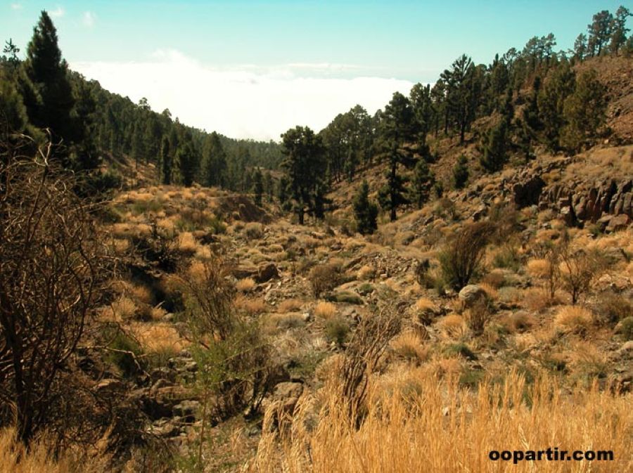 Une demi-heure après avoir quitté Las Americas, des paysages de pierre et de cactus ont remplacé les zones d'habitation. La route de Vilaflor plonge bientôt dans une forêt de pins.