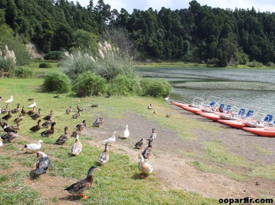 lac de Feu (lagoa de Fogo), là encore un lac endormi au fond d'un volcan, l'un des plus beaux sites de l'île. Si vous passez par Ribeira Grande, prévoyez la visite de l'usine de production de liqueur.