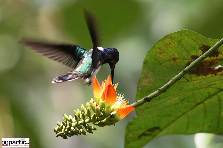 Le lendemain matin, alors que tourbillonnent encore brumes et nuages de l'humidité, nous mettons le cap sur la réserve des colibris. Grâce à un télescope et aux indications de nos guides, nous observons certaines des trente-deux espèces de ces extraordinaires oiseaux-insectes (entre 80 et 200 battements d'aile par seconde).